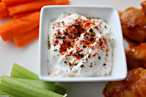 - Mix 1/2 cup of Greek Yoghurt along with a some salt, 1/2 tsp of cayenne and 1/2 tsp of the toasted cumin powder.Serve alongside the chicken wings with some sliced carrots and celery!