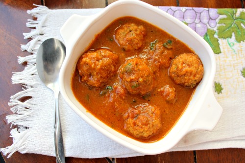 i tried this recipe with some modifications- used ground turkey, omitted yogurt, added boiled/mashed potatoes and baked koftas for 20 minutes @ 400 and simmered with this sauce with added creamed cashew and coconut milk – it was one delicious, royal dinner. Thank you so much for the recipe 🙂