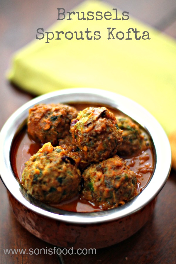 My Brussels Sprouts Kofta is one amazing dish with some exotic flavors and super simple for anyone to try.I recently spotted sliced Brussels Sprouts at Trader Joe’s and couldn’t resist buying one pack.Its a time saver.The koftas have some spices, ginger and dried cranberries and are bound together using some Gram Flour (Besan) easily available at your local Indian Grocers.The combination of the tart, sweet,spicy flavors is insanely good and will convert any Brussels Sprouts hater into a Brussels Sprouts lover.The only thing that you have to be careful about is to not cook the koftas for too long in the sauce.They might collapse.You can add the koftas just before serving and cook for a couple of minutes.They should be perfectly coated in the juices and taste delicious.Enjoy.