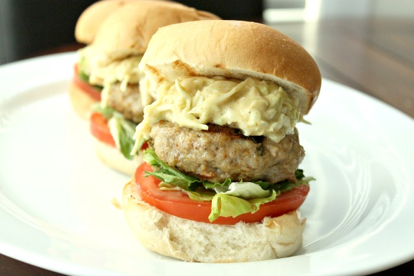 1. Chicken Burger with Curried Cabbage Slaw-Indian Inspired